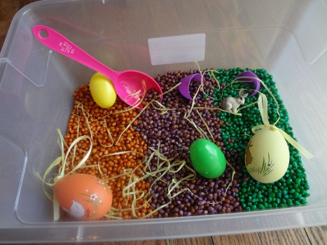 Easter is fast approaching and we have been getting ready in our house. Yesterday I read on how to dye corn kernels for sensory fun or crafts and knew I had to try it, so I decided to make an Easter sensory bin. You can find the tutorial here on Fun-A-Day. http://fun-a-day.com/how-to-dye-corn-kernels/ It was an easy tutorial but I wanted to make some fun colours. I made the recipe without adding the food colouring, I made 3 batches. I used this neon food colouring I found at Zehrs.