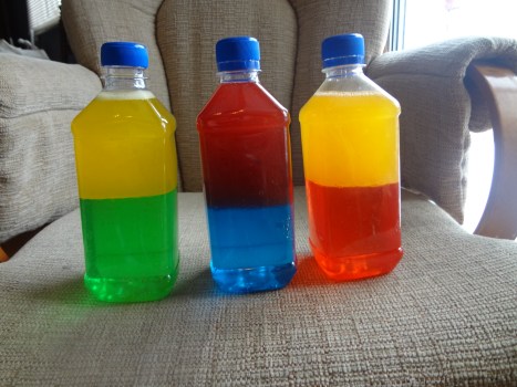 Gray insisted on making our next one with red and blue which look rather pretty but once shaken just makes a sort of murky brown purple.