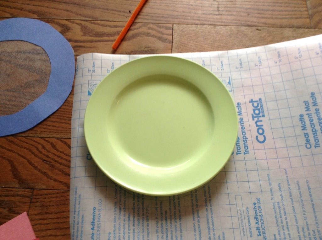 I then used the inside rim of the plate to trace a smaller circle on the inside and cut it out so it looked like a zero. Then use your plate to cut out as many circles of contact paper as you have body pieces.